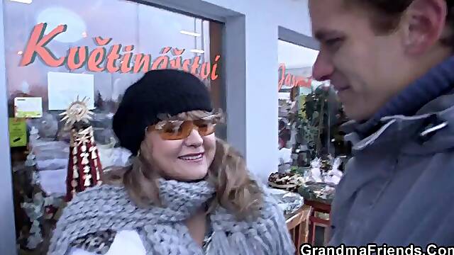 Old hairy grandma rides strangers cock